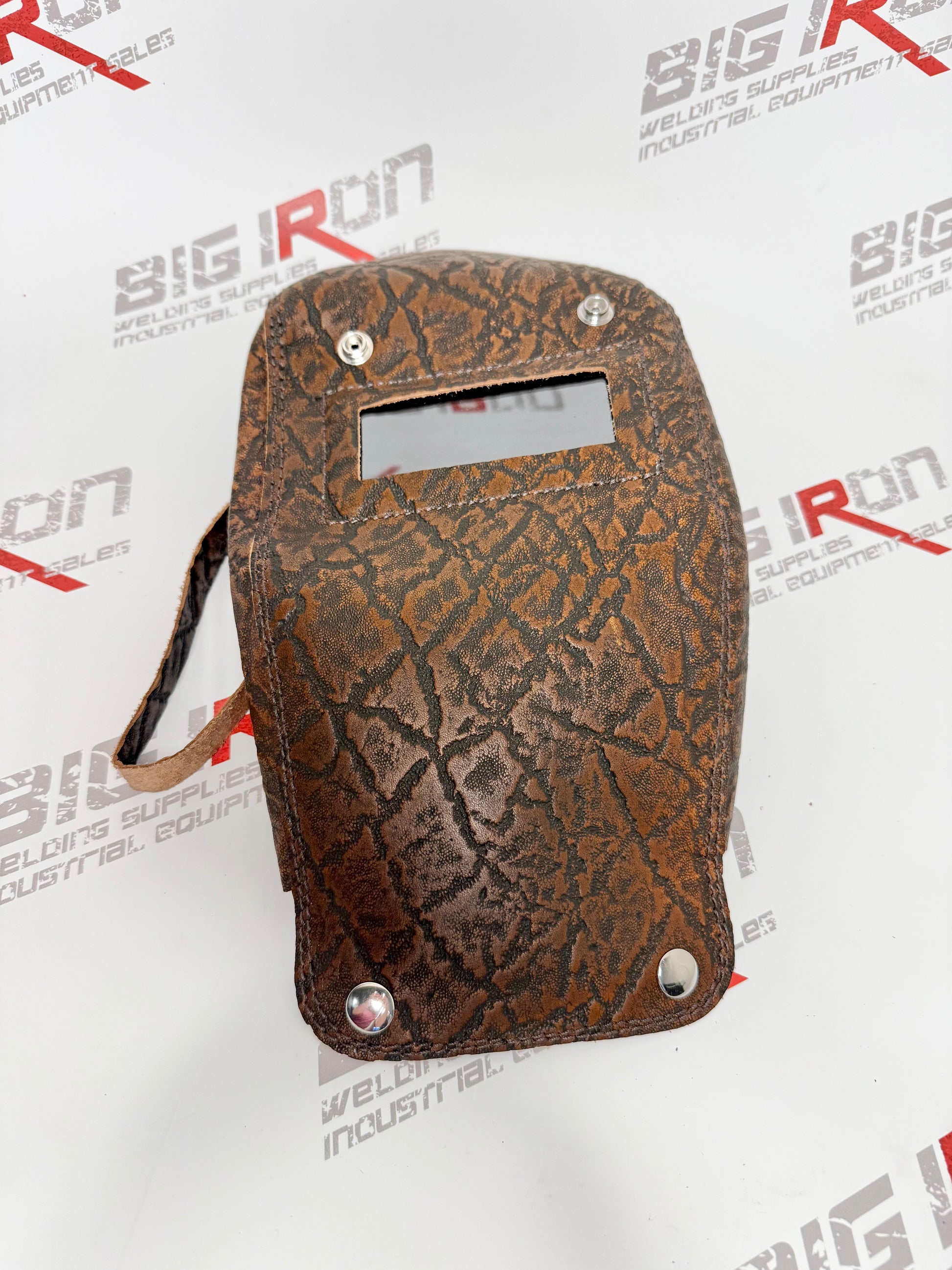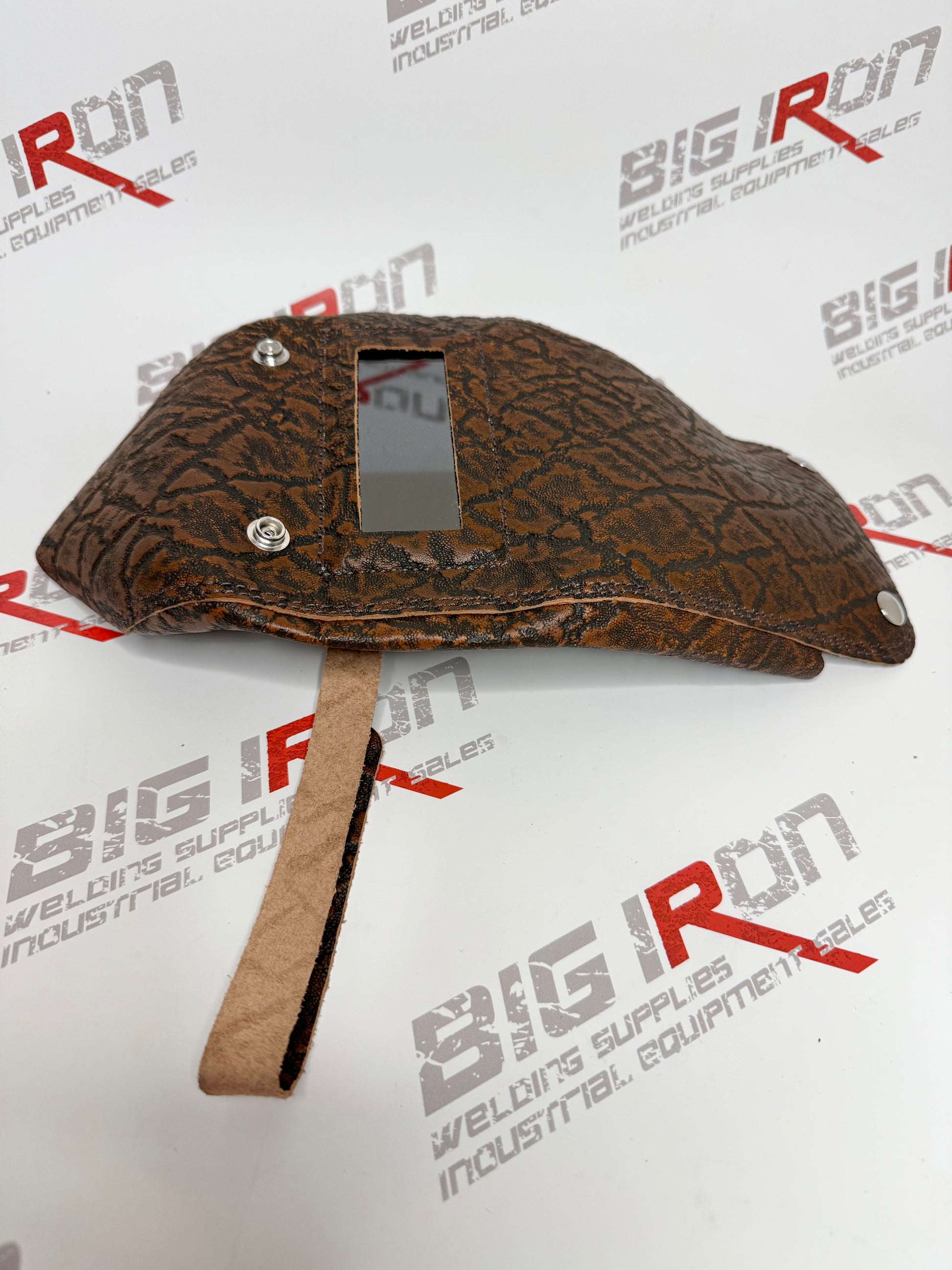 This leather pocket welding hood combines practicality with superior craftsmanship. The adjustable leather strap ensures a secure and comfortable fit, while its lightweight, flexible construction is perfect for tight workspaces. The varying colors and styles of the leather, stitching, elastic, and metals make each hood unique, showcasing the authentic craftsmanship of Outlaw Leather.